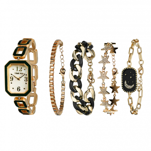 时光一百(TIME100)女表小表盘简约防水女士腕表套装女手链手表七夕礼物送女友W50888L钢色