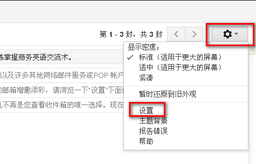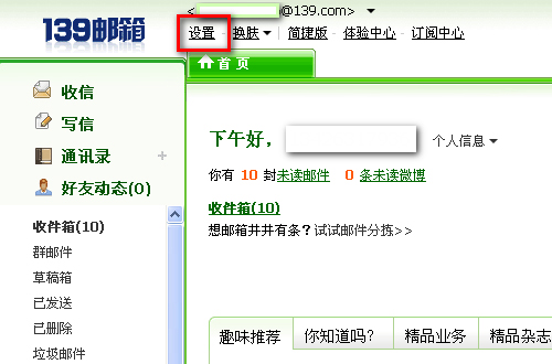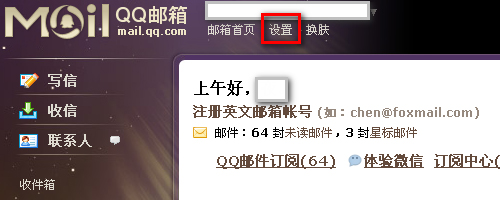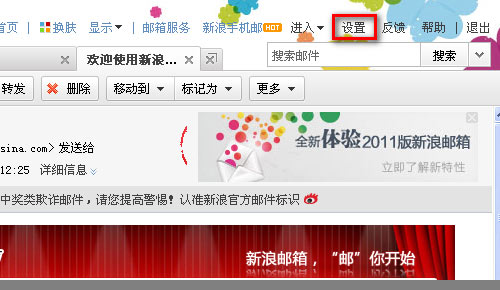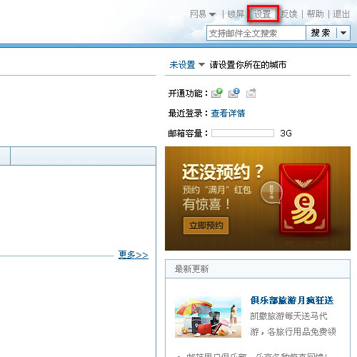 第一步:打开邮箱,点击页面右上方的“设置”。