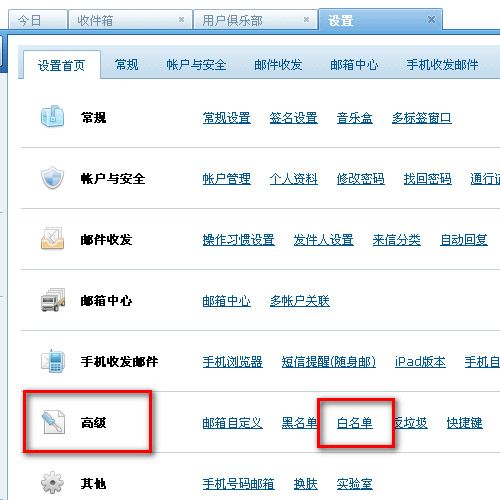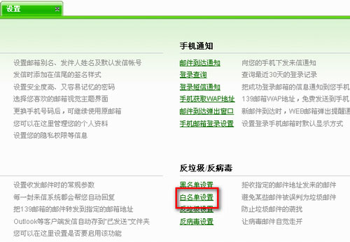 第二步:在设置页面点击“反垃圾”中的“设置白名单”。