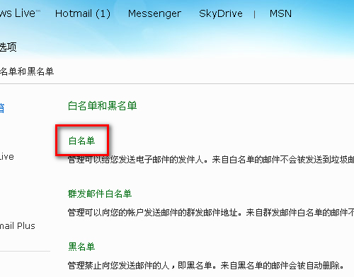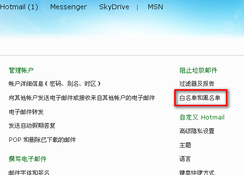 第二步:点击“阻止垃圾邮件”中的“白名单和黑名单”。