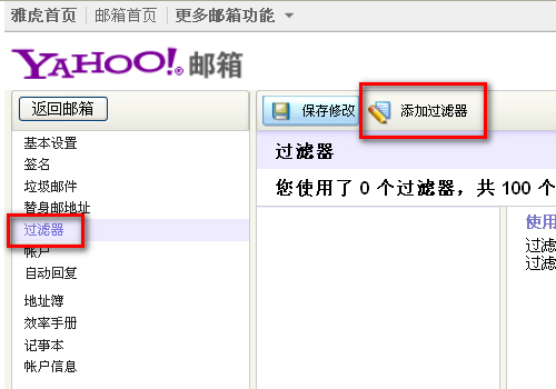 第二步:在邮箱设置页面,点击“过滤器”中的“添加过滤器”。